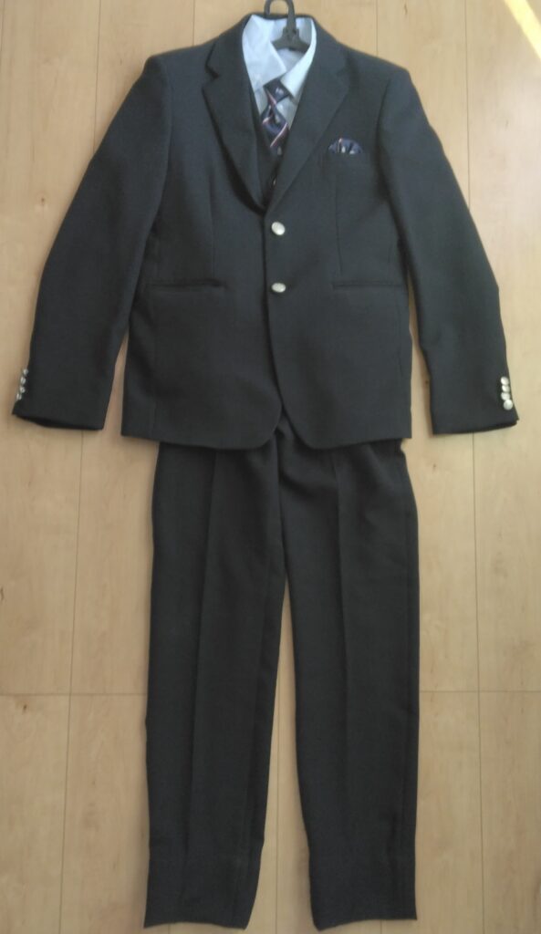 3~5年生くらいまで着ていた140㎝の黒色の細身スーツ。