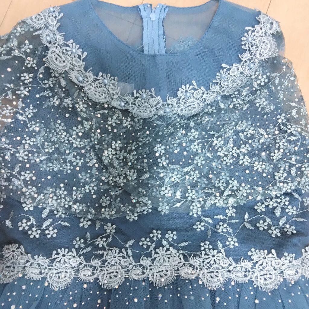 上のシャンパン色のドレスとほぼ同時期に購入した、濃い水色のドレスです。